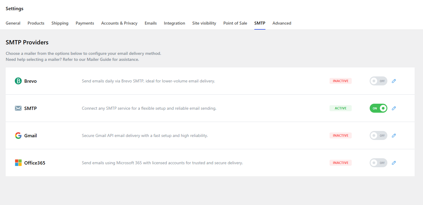 Once configured, all WooCommerce emails will automatically be sent via the chosen mailer.