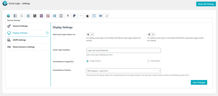 For adding social login to the default WordPress login page/WordPress registration page enable this setting.