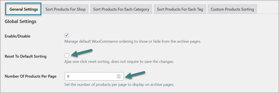 - Enable Manage Default WooCommerce Ordering To Show Or Hide From The Archive Pages.