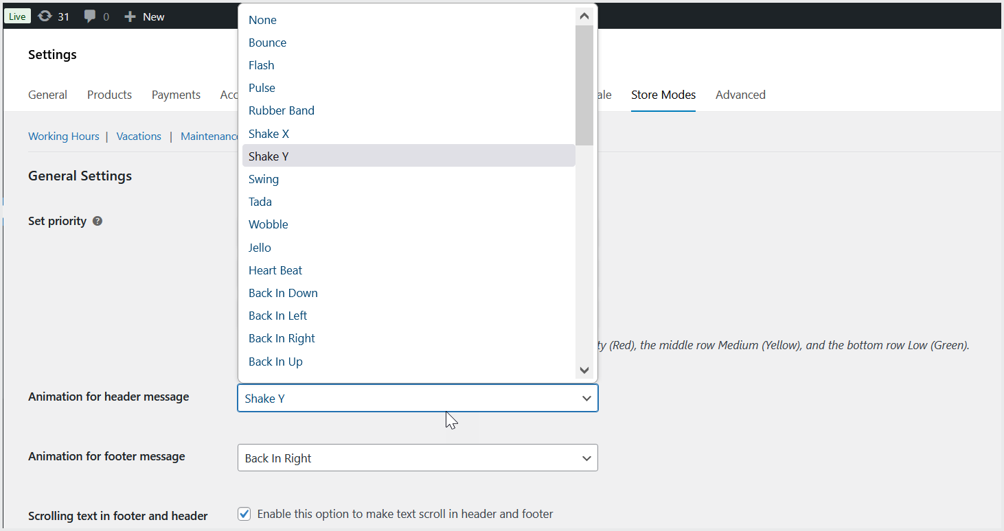 Option to select animation style for header and footer messages and enable scroll option to scroll the text of header and footer messages.