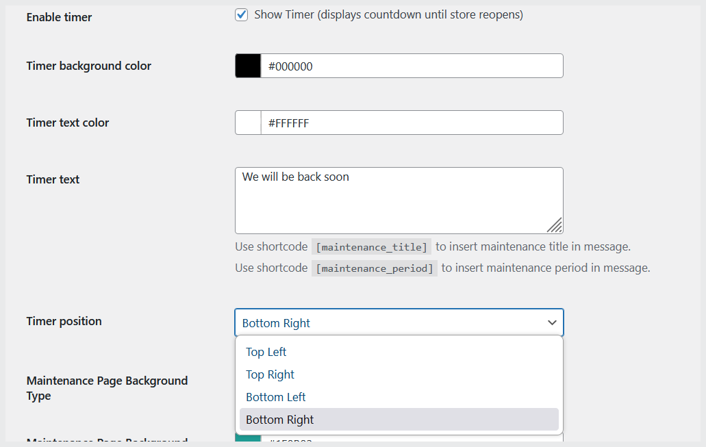 You can also enable a timer to display the store’s remaining time for reopening to your customers.