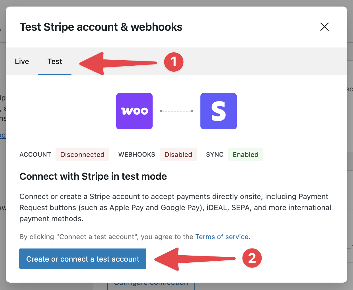 - Confirm that the connection to your account’s test mode is working.