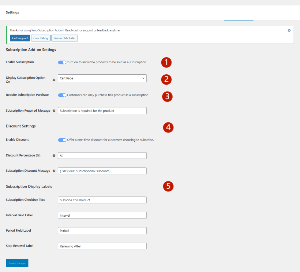 ↑ Back to topGo to WooCommerce > Settings > Subscription Add-On to configure: