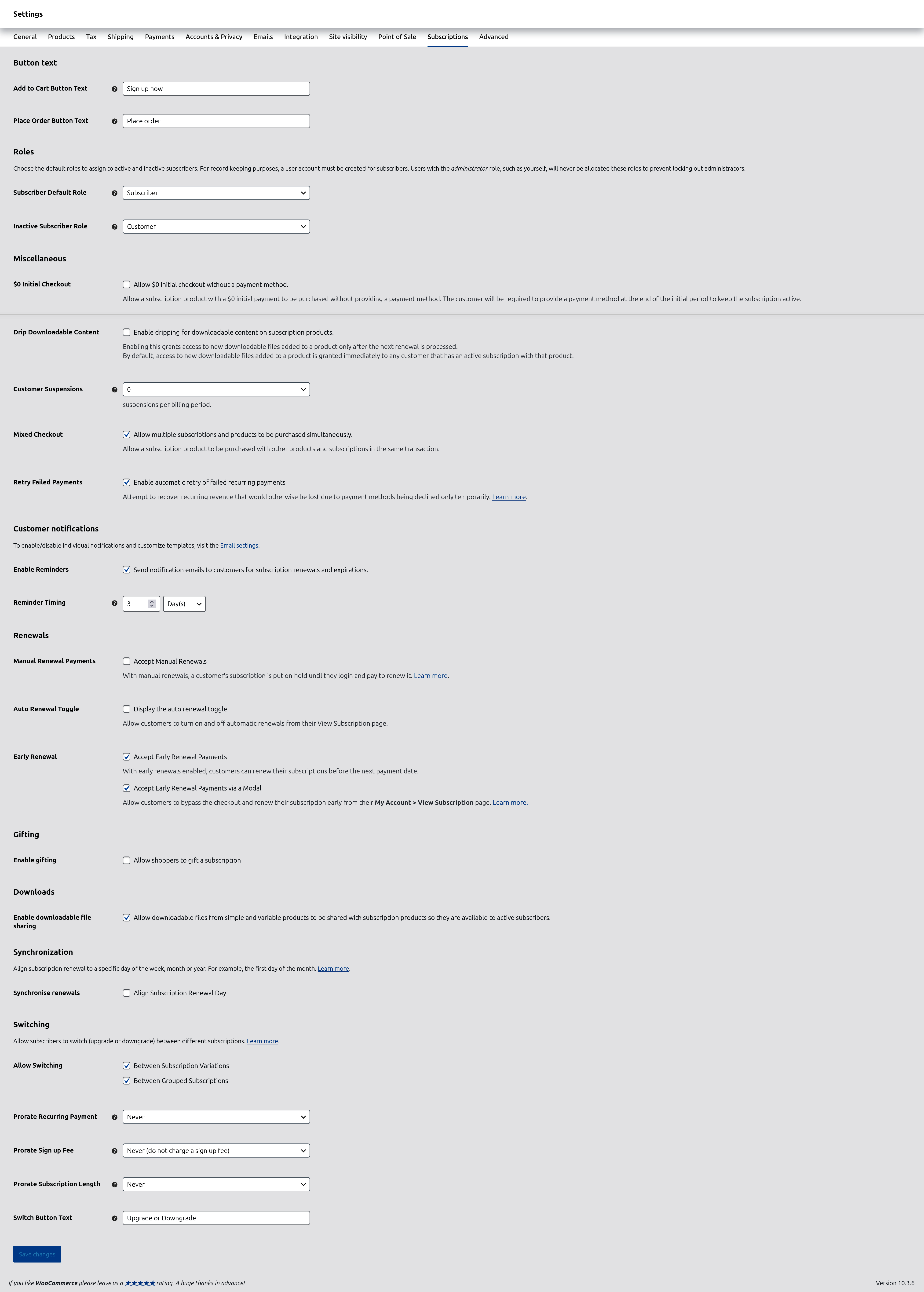 ↑ Back to topCustomers are able to switch between variable subscription options or grouped subscription products if this setting is enabled. This process has a its own set of nuances that are best explained in a separate guide – Store Manager’s Guide to Subscription Switching.