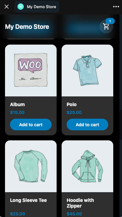 | Embed existing store | Opens your WooCommerce shop page inside Telegram. Customers see your existing theme and layout. | Merchants who prefer to reuse their existing site design |