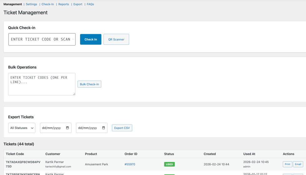 QR Code Tickets & Check-in allows your WooCommerce store to: