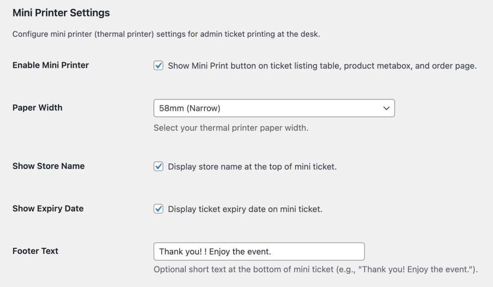 To further tighten security, the plugin includes a Check-in Allowed Roles setting available at both the global and per-product level. This setting lets you define which WordPress user roles are permitted to perform check-ins. Simply create a dedicated WordPress user role for your check-in staff, assign it as an allowed role in the plugin settings, and staff members with that role will only be able to perform check-ins — nothing more. The Administrator role is always included by default and cannot be removed.