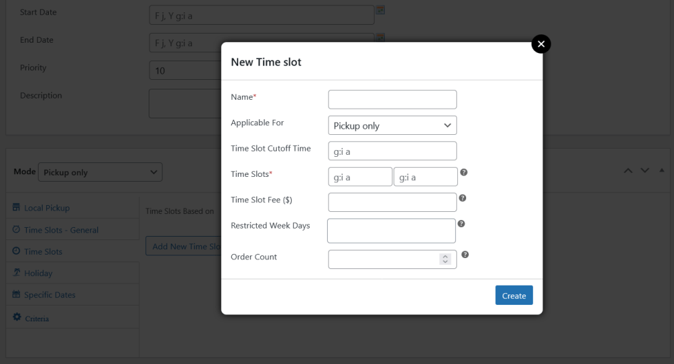 Pickup Fee: You can optionally enter a pickup fee for the Time Slot.