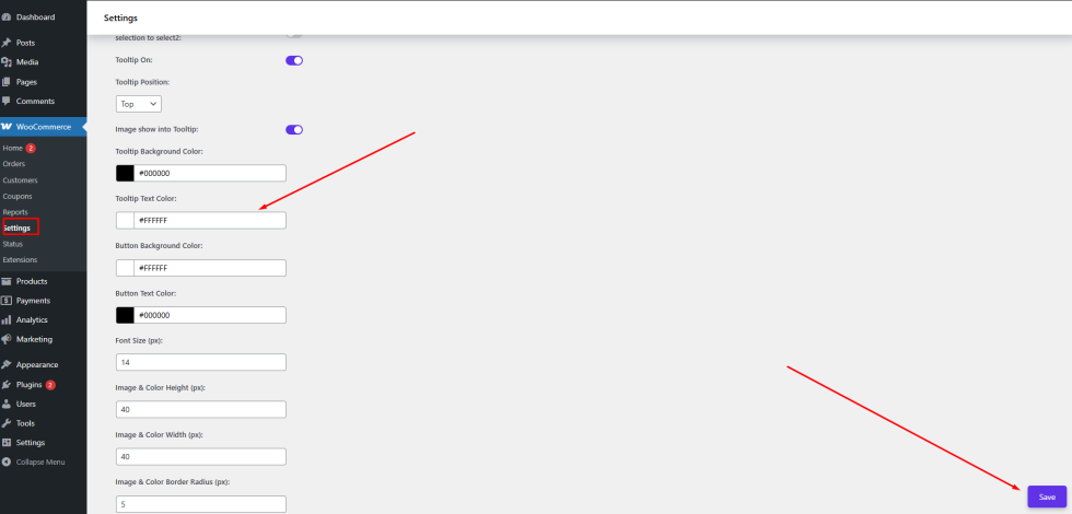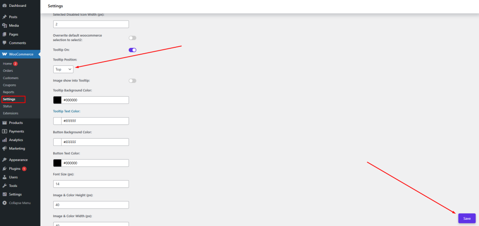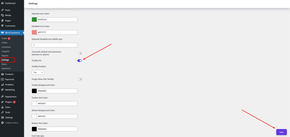 After saving the settings, the selected text color will be applied to all tooltips on the single product page, ensuring clear visibility and a consistent design.