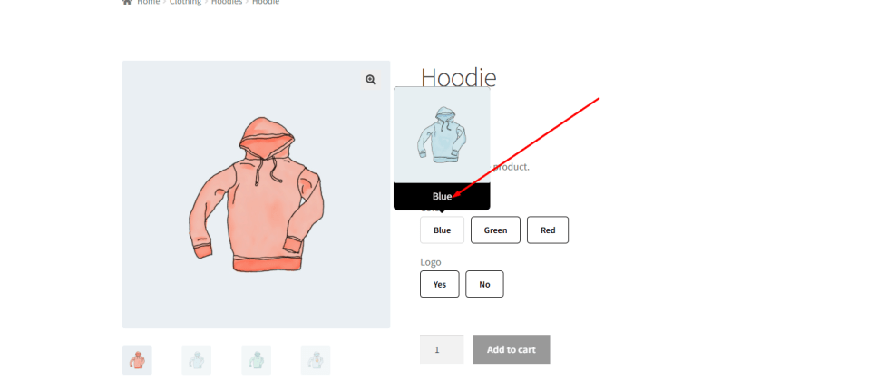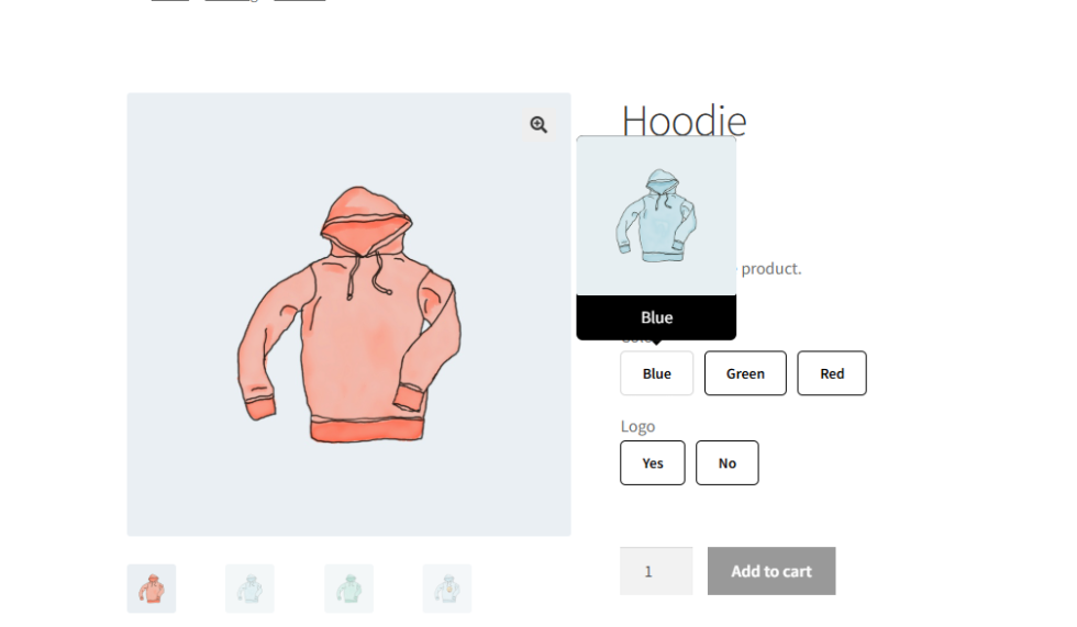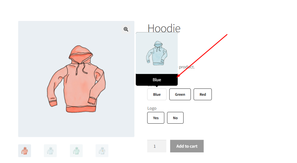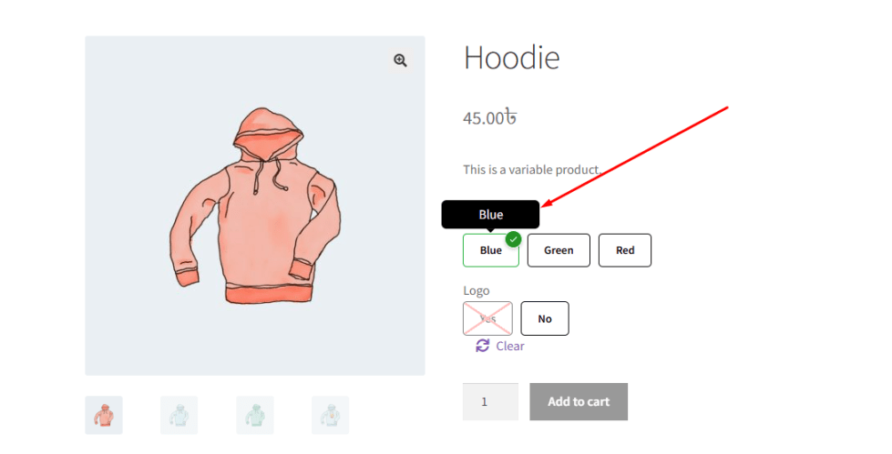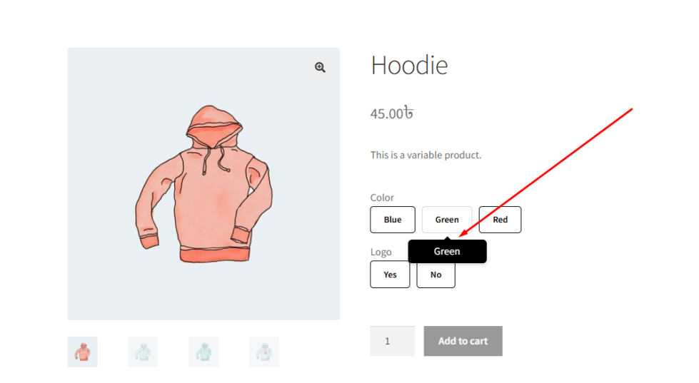 These tooltips typically display the attribute name or value, helping customers clearly understand what each variation represents.