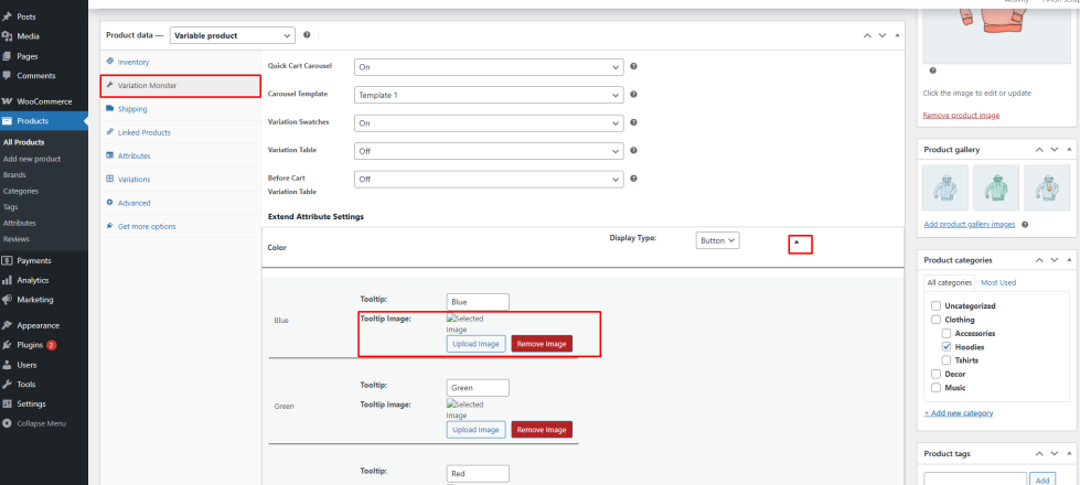 When this feature is enabled, tooltips will not only show the attribute name or value, but can also display an associated image. This is especially useful for products where visual details matter, such as colors, patterns, or styles.