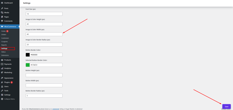 After saving the settings, the defined width will be applied to all image and color variation swatches on the single product page, ensuring a consistent and polished appearance.
