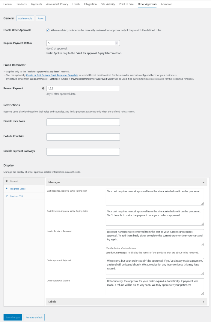 ↑ Back to topAfter activation of Ultimate Order Approval, navigate to: WooCommerce > Settings > Order Approvals to setup the plugin settings.