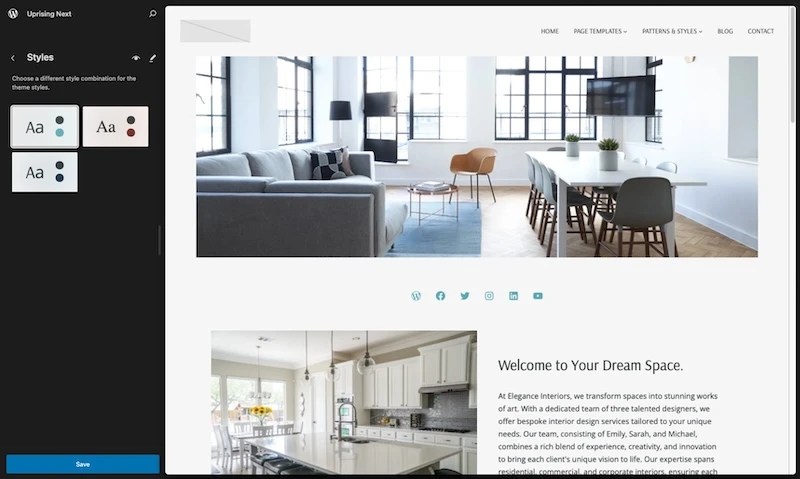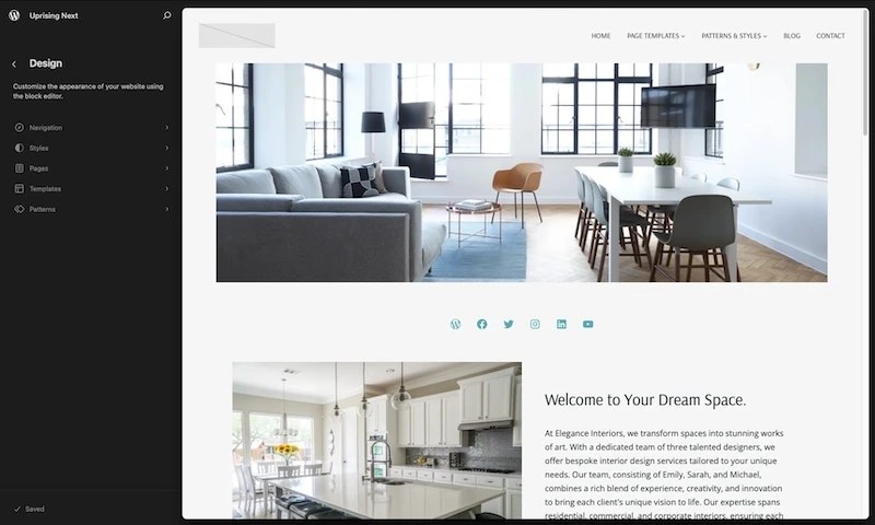 ↑ Back to topThe Uprising Next theme is designed to make the most of the Site Editor, which allows you to control the style, layout, and design of all your website elements.
