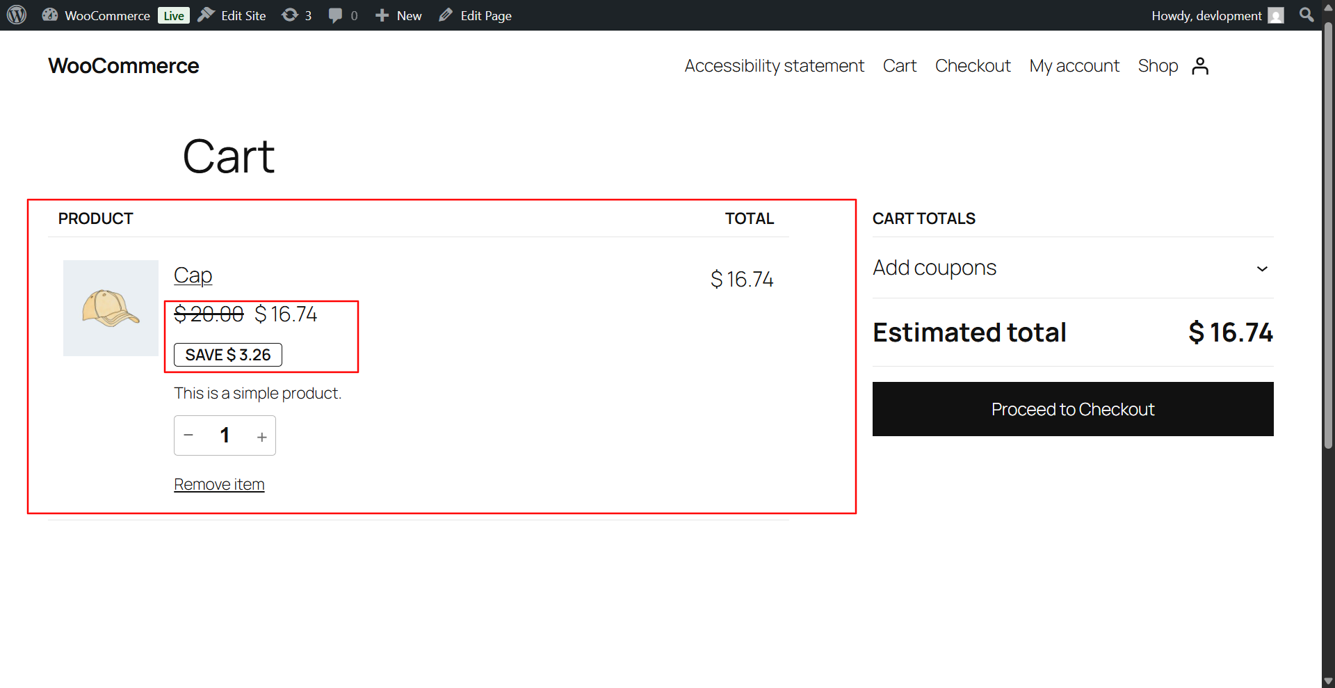 - Percentage Discount: Enter a discount percentage to apply on regular or sale price