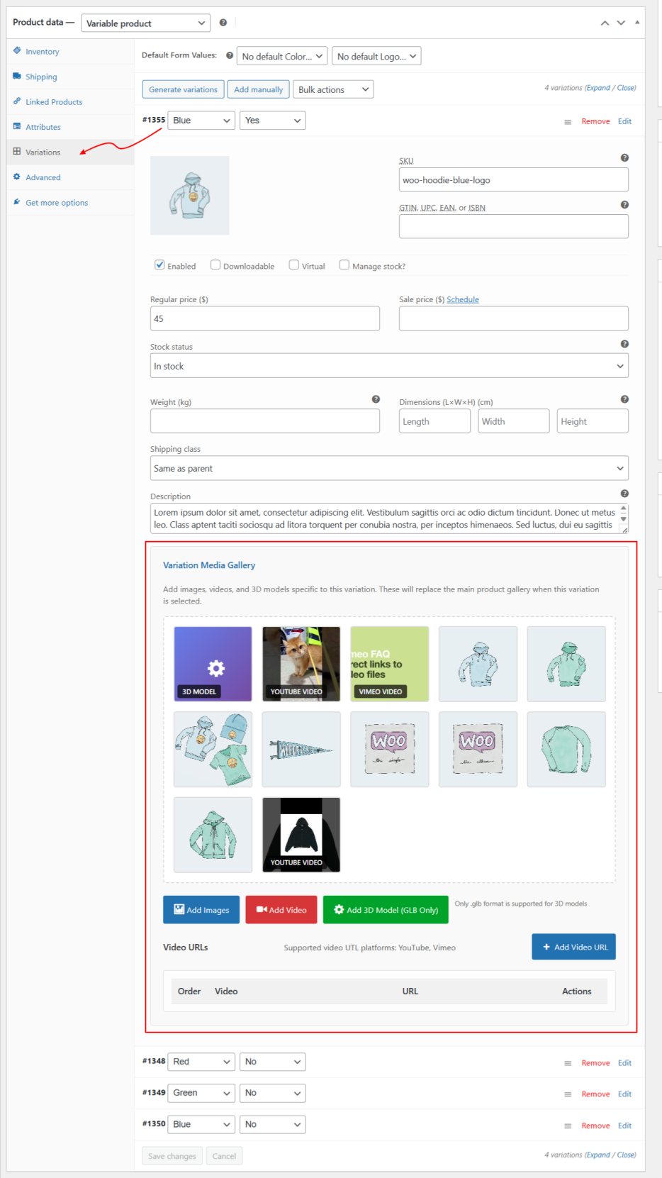 Variation Media Gallery for WooCommerce enables you to add images, videos, and 3D models to individual product variations. When a customer selects a variation (like color or size), the gallery dynamically updates to show media specific to that variation.