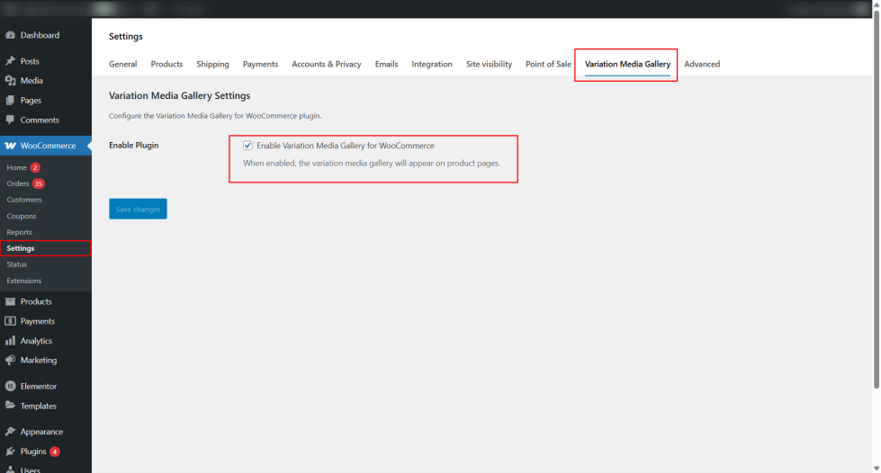 3. Find the checkbox labeled Enable Variation Media Gallery.