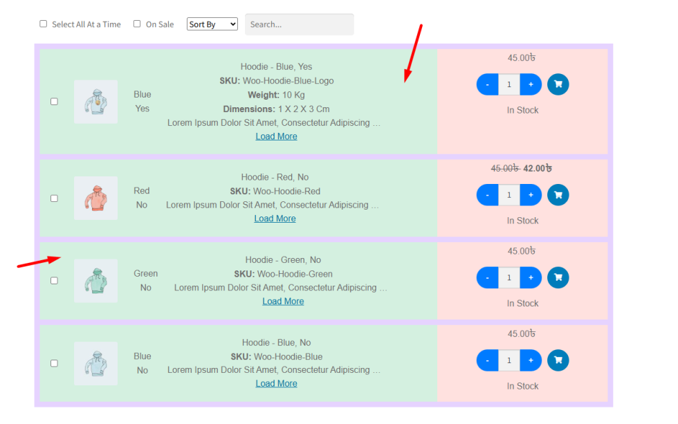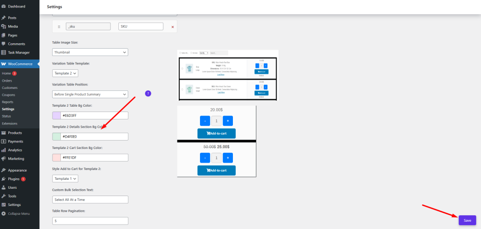 By enabling Table Template Two, customers can instantly see variation descriptions, weight, and dimensions along with the standard variation details. This makes it easier for them to compare options and choose the correct variation without leaving the page.