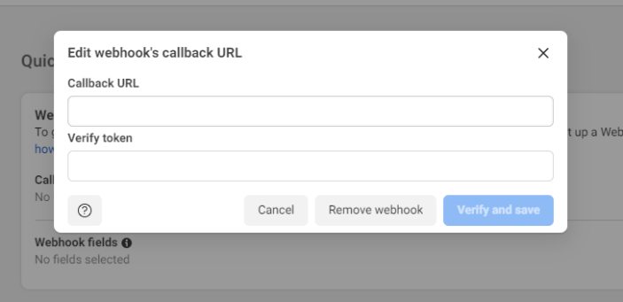 Go to the Developer app dashboard, Then select WhatsApp, go to the configuration section, click on the Edit menu, and proceed to input the webhook call back URL and Verify token .Then click the Verify and Save button