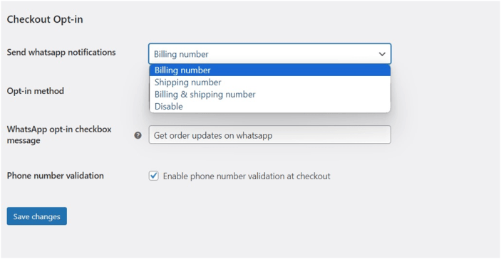 With WC Messaging Pro, admins can choose to send WhatsApp notifications to billing numbers, shipping numbers, or both. They also have the option to disable WhatsApp notifications altogether.