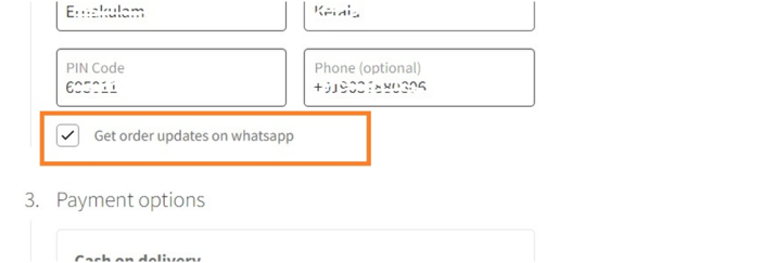 With the first option, a checkbox appears on the checkout page for customers to agree to receive WhatsApp notifications. If they don’t tick the box, notifications won’t be sent.