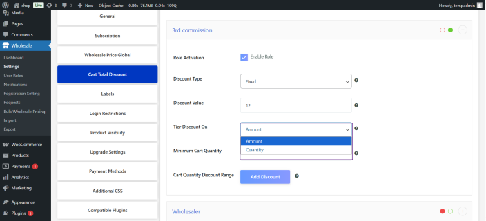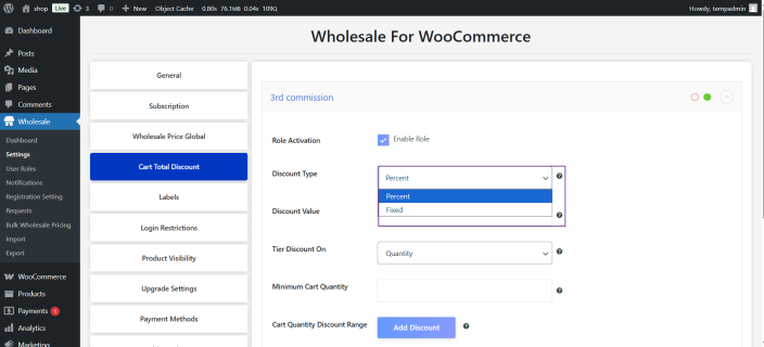 - Select the wholesale discount type of your choosing.