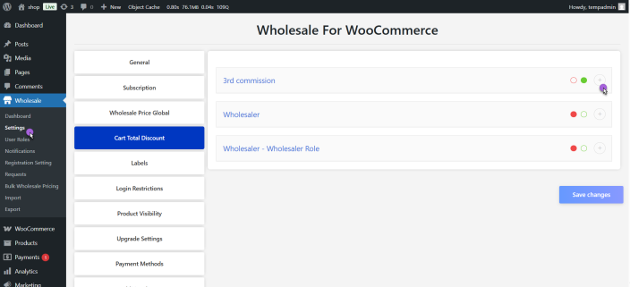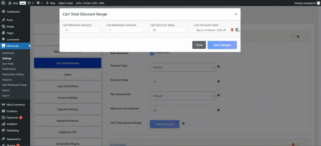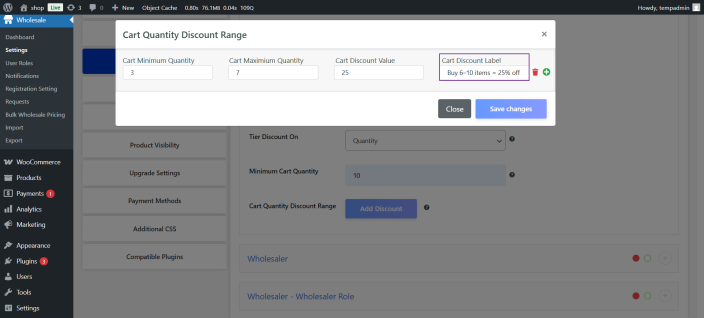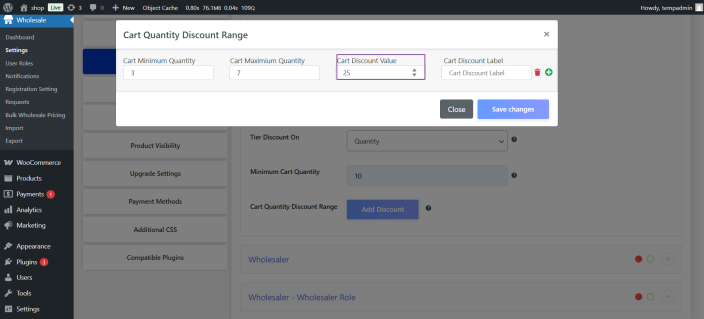 - Select a wholesale discount type for each variation and role.