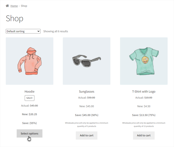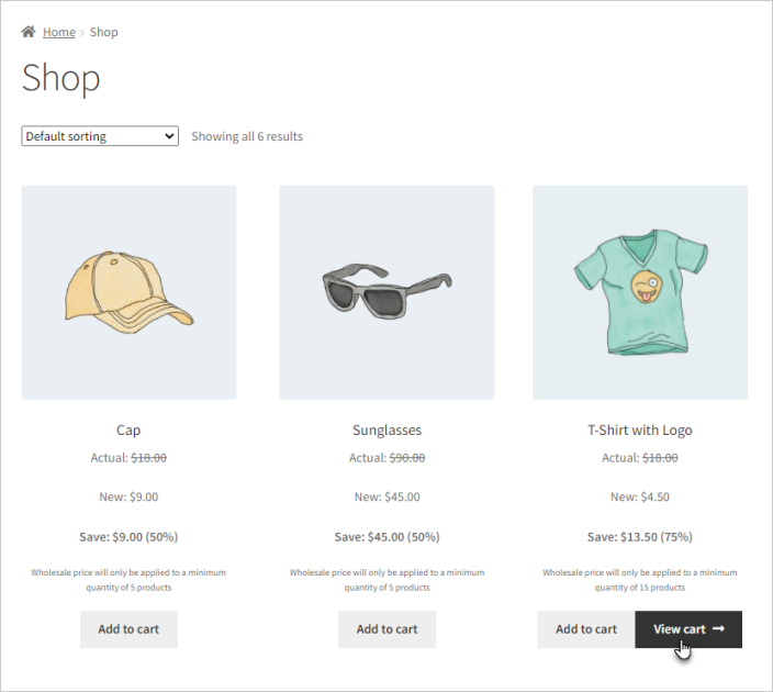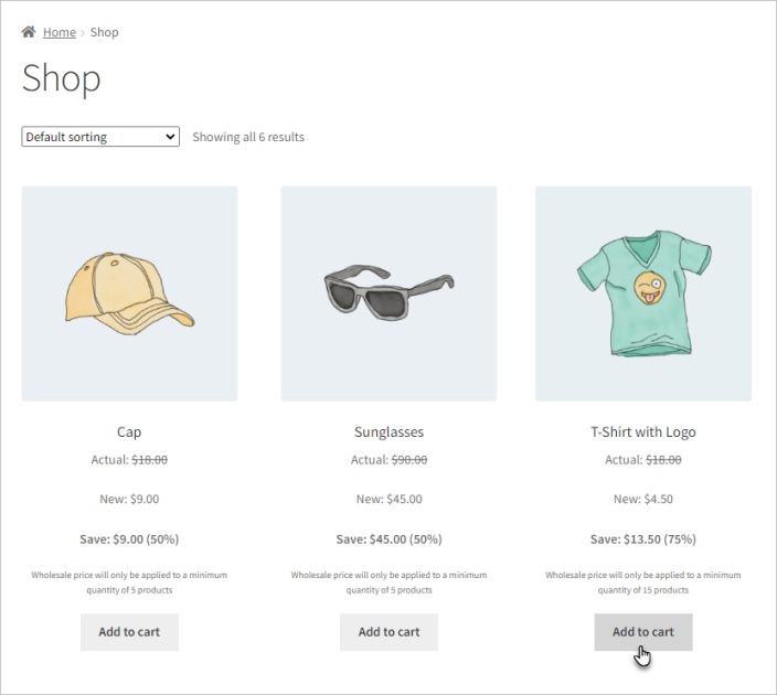 Now, all products linked with that category will show the wholesale amount you entered.