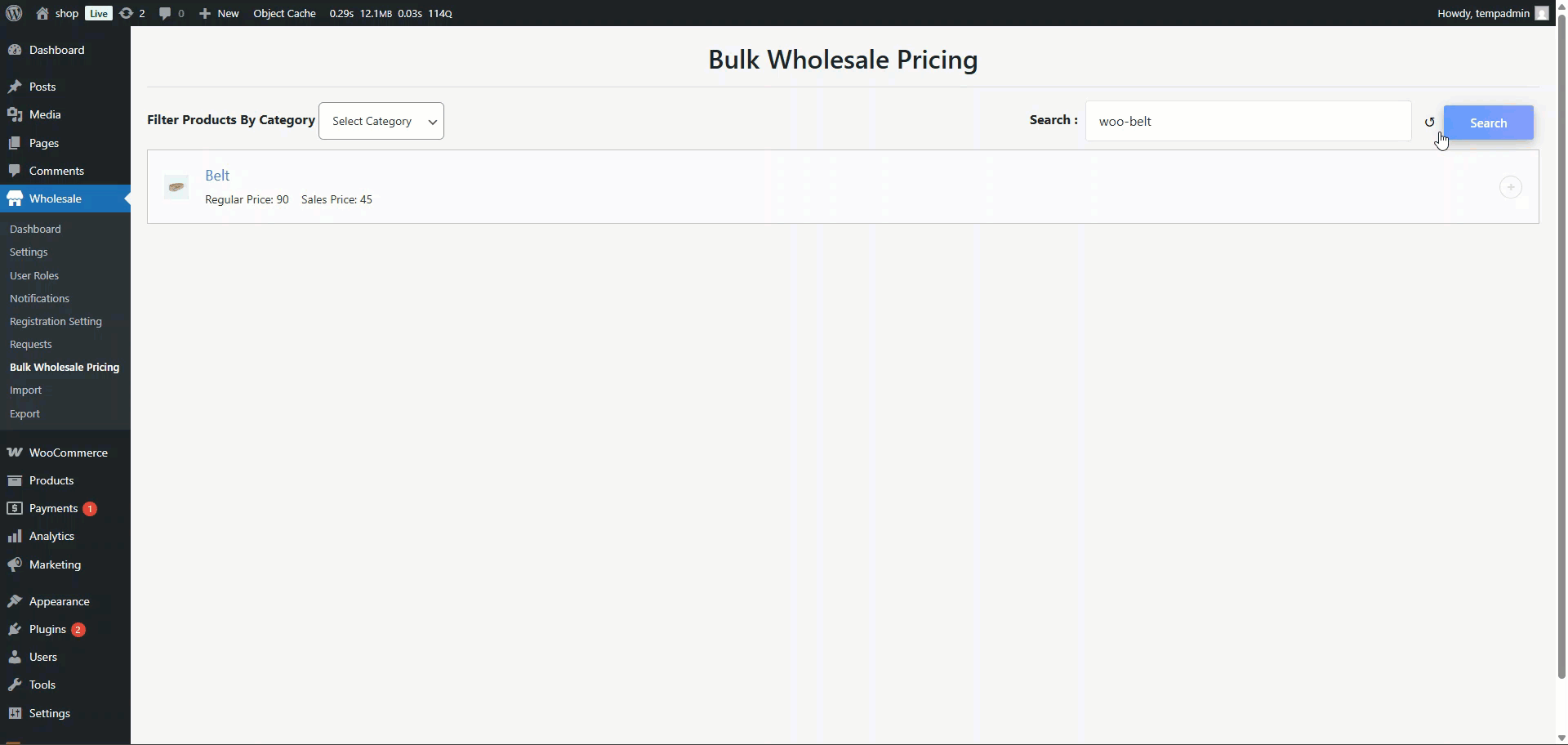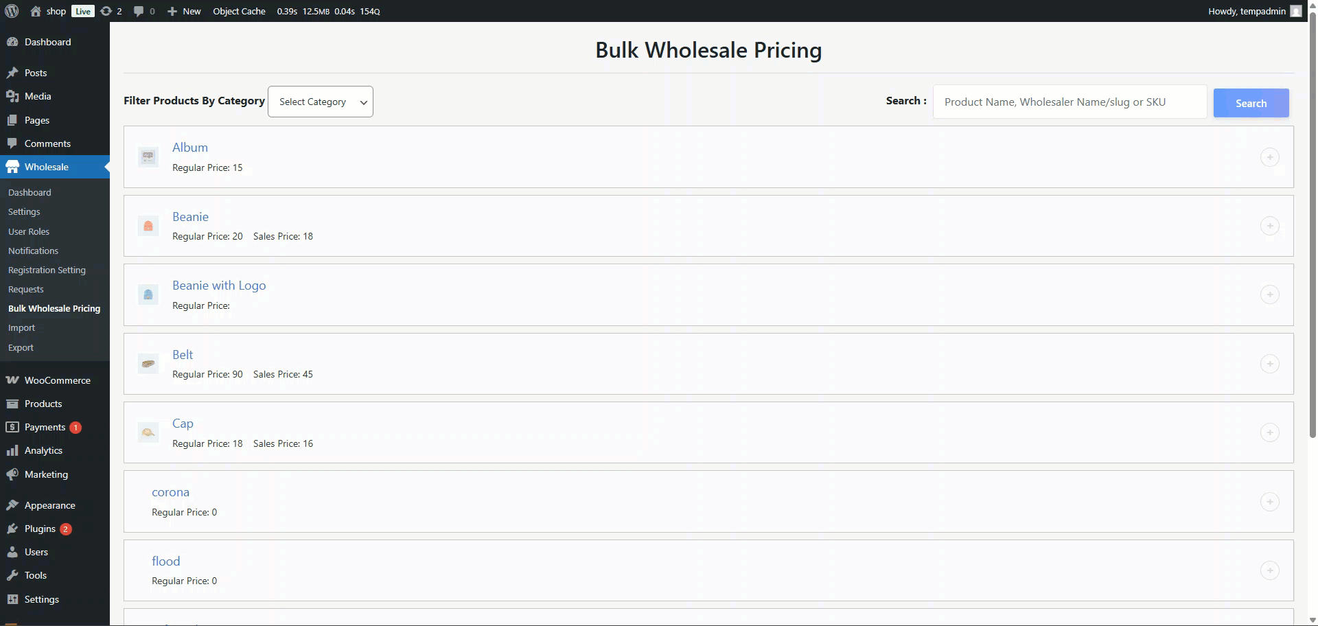 ↑ Back to topYou can create wholesale prices for product categories so that a particular category’s product prices are adjusted instantly.