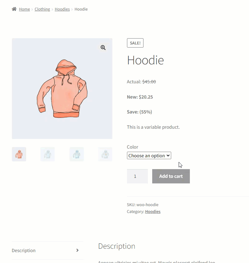 Note: The Product must be a variable product