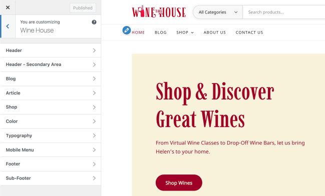 ↑ Back to topYour customization settings are within Appearance > Customize > Wine House.