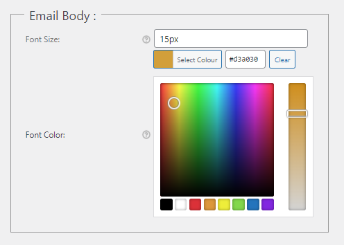 - Font colour of Order Note – select font colour from the palette or add a hex code or RGB colour code.