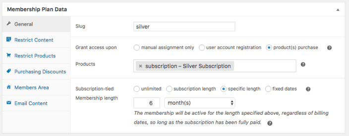 ↑ Back to topTying a membership to a subscription can also add a few settings while editing a membership plan, or anywhere restriction rules are used for this plan.
