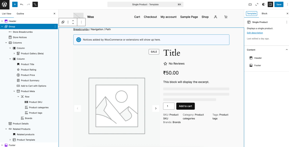By editing the Single Product template, you can fully customize how your product pages appear to your customers, ensuring they align with your brand and provide the best shopping experience.