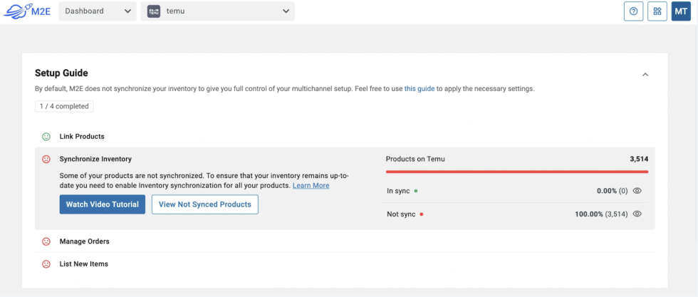 Many sellers use the dashboard as a quick daily check. Open it, review Temu orders, listings, and sync activity. If everything looks fine, you go back to the routine. If something is off, the dashboard shows you where to go next.
