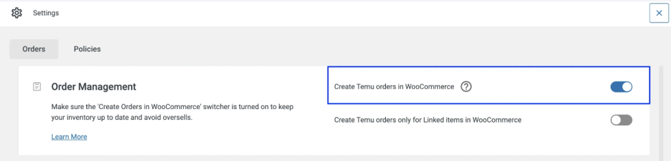 โ Back to topNext, decide how Temu orders should behave inside WooCommerce.