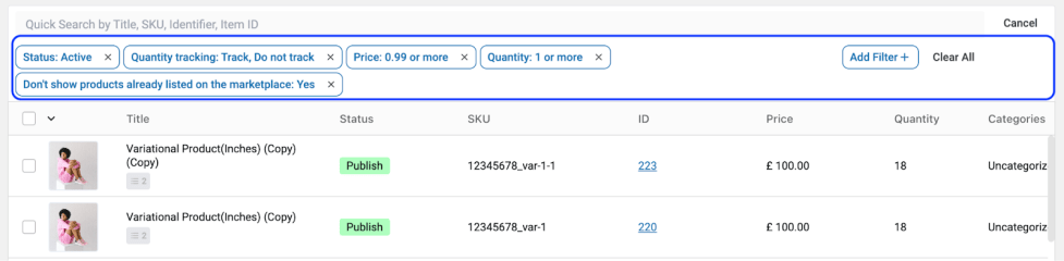 โ Back to topIf you already have products live on Temu, M2E will look for matches in WooCommerce using SKU or Product ID.