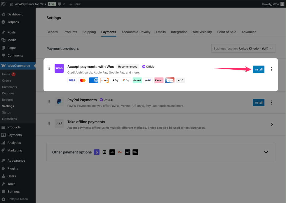 ↑ Back to topTo install WooPayments: