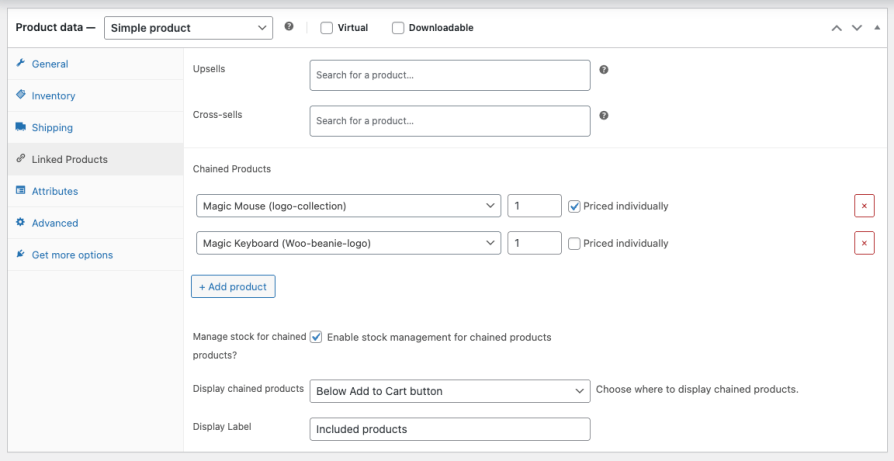 Allows you to link multiple products together so that when a customer adds a main product to the cart, the related (chained) products are automatically added as well.