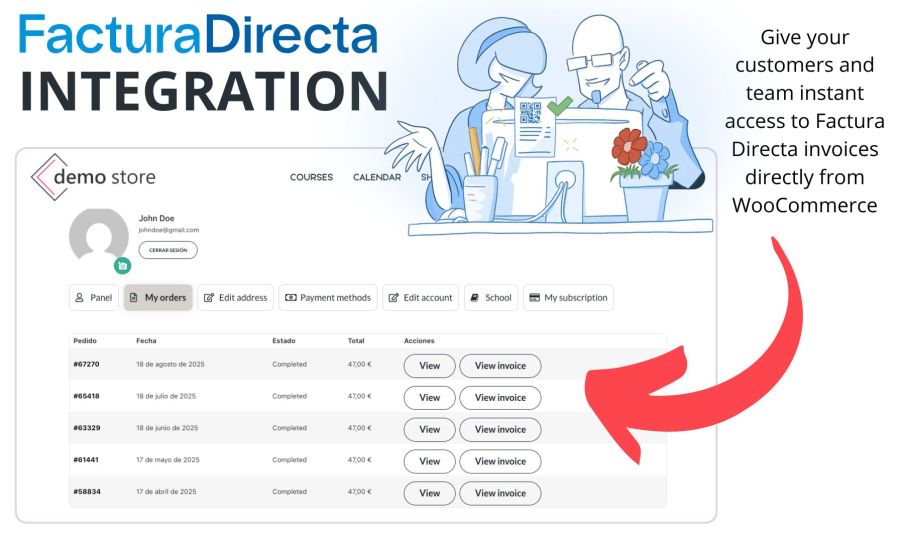 Automatic integration: invoices are generated in FacturaDirecta directly from WooCommerce orders.