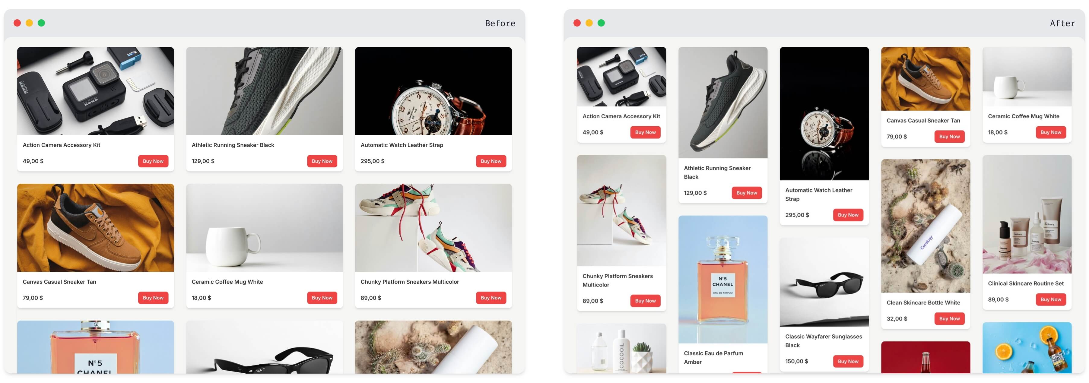 Make specific products stand out by spanning multiple columns or using different aspect ratios.