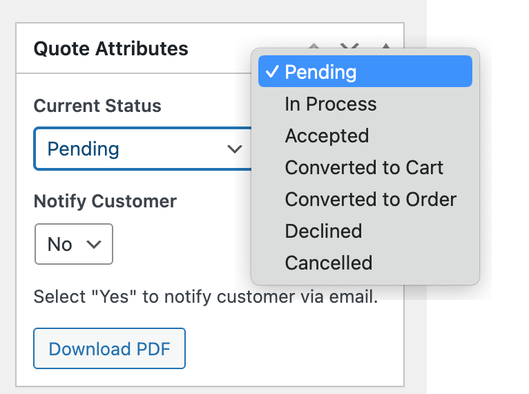 To better manage your quotes, the extension now offers multiple quote status and ability to send email notifications to customers on status change.
