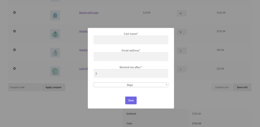Not every customer is ready to purchase immediately. By allowing them to save their cart and reminding them later, you: