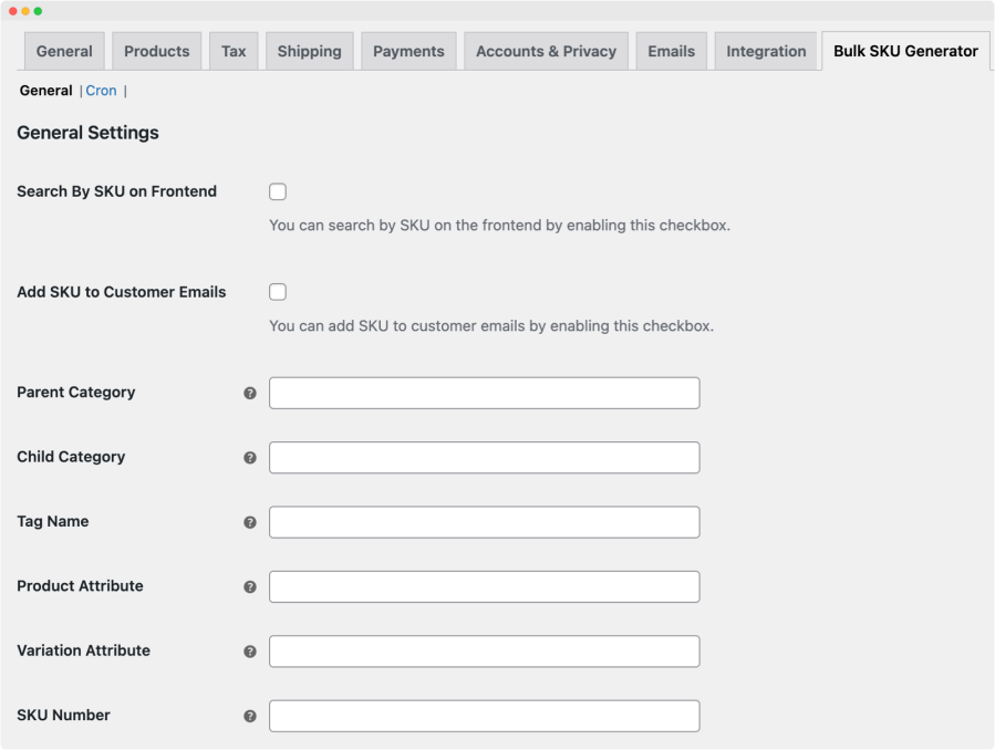 The SKU format can be easily personalized by adding any custom text anywhere in the field along with the predefined variables. The variable values are replaced dynamically to generate SKUs that uniquely identify each product and variation, making inventory management more efficient. The pre-defined variables includes,