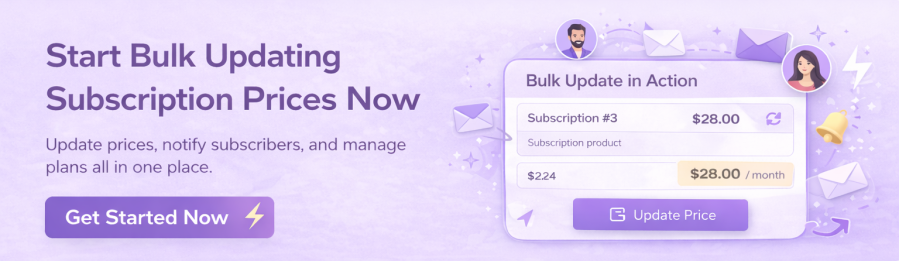 Stop updating subscription prices one by one. Bulk update WooCommerce subscription prices for all existing and new subscribers at once and automatically notify every customer by email.