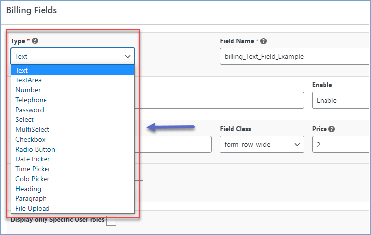 You can choose from 15 different field types to display on checkout fields.