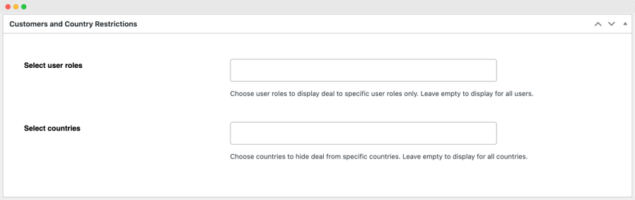 Create targeted promotional campaigns by showcasing your deals to specific user roles and countries. By targeting the right audience with tailored promotional deals, you can improve your store’s conversion rate.