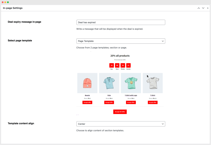 You can choose from 2 different templates to show deals on your store. For each template, you can choose to customize the alignment as per your theme layout.