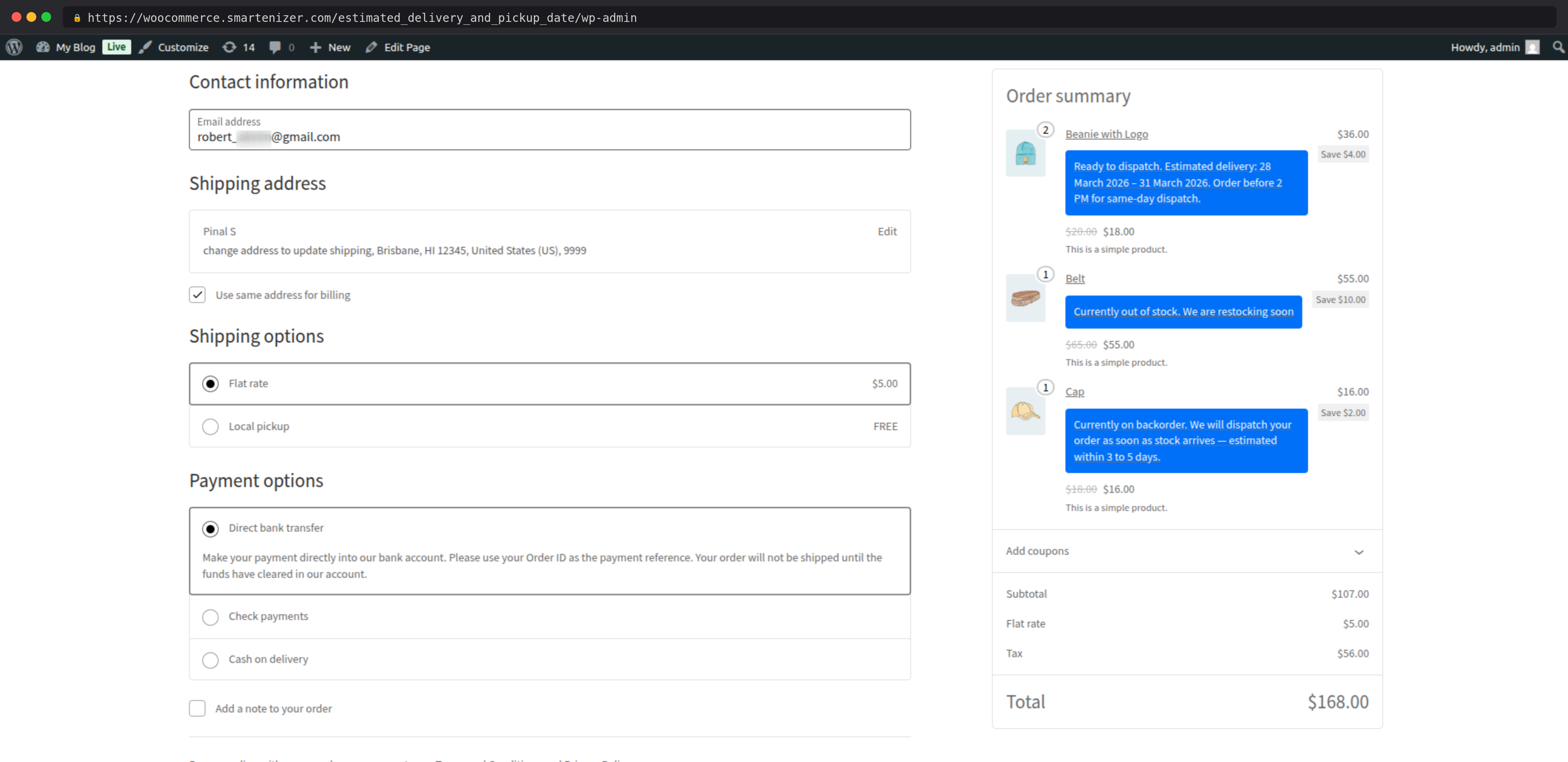 From the shop page to the thank you page, the delivery message follows the customer through every step of the purchase process, building trust and confidence at every touchpoint.