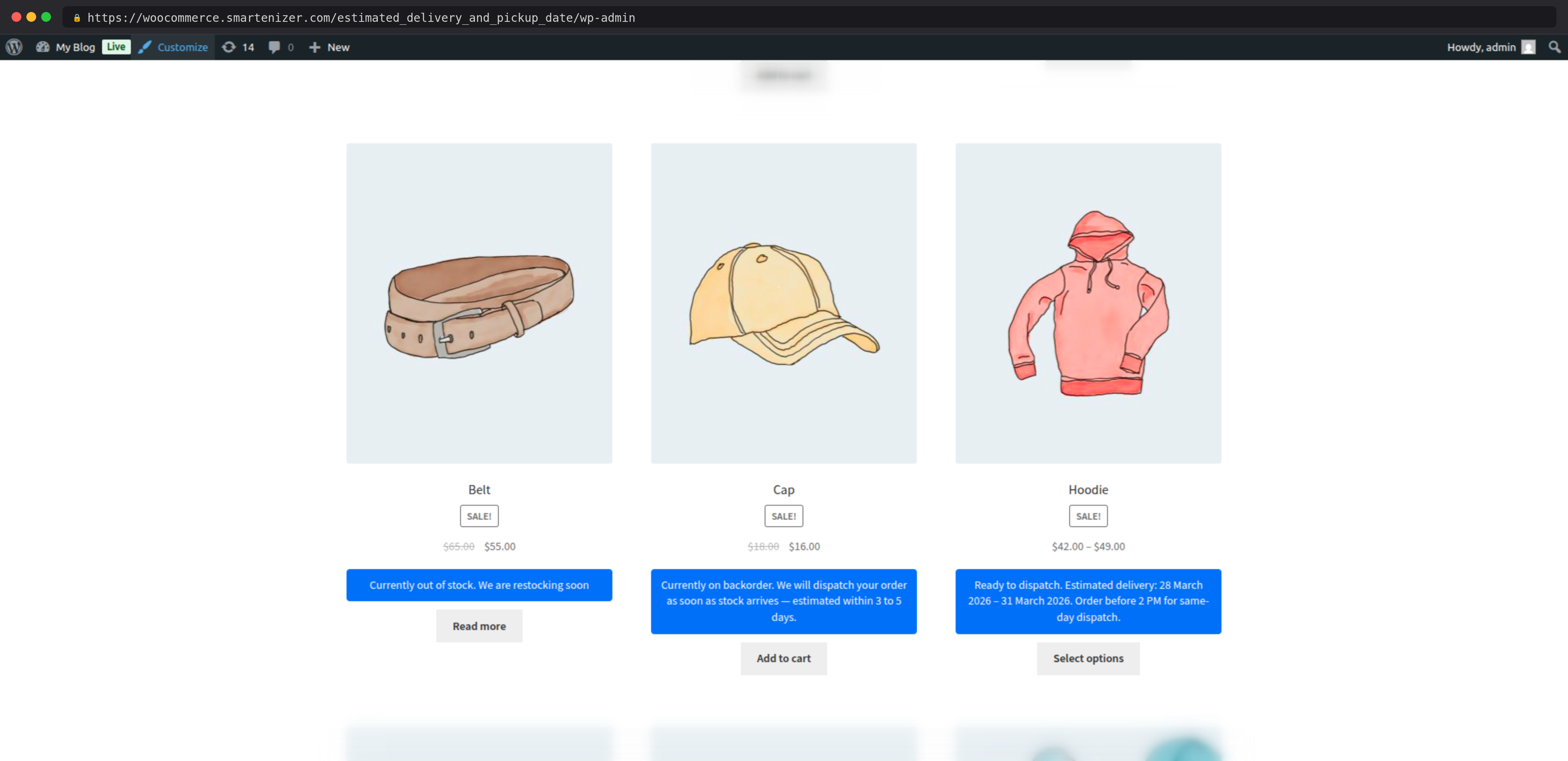 Separate messages for in-stock, out-of-stock, and backorder products mean customers always see contextually accurate delivery communication — not a generic estimate that applies regardless of availability.